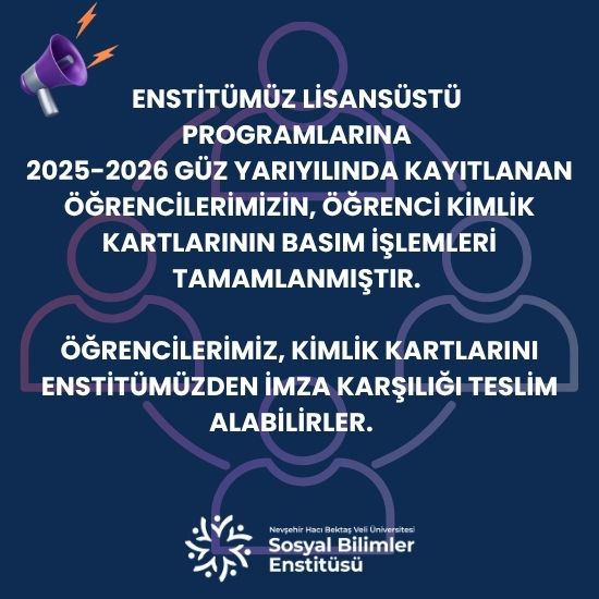Sosyal Bilimler Enstitüsü 2025-2026 Eğitim Öğretim Yılı Güz Yarıyılı Lisansüstü Öğrenci Alım Sonuçları